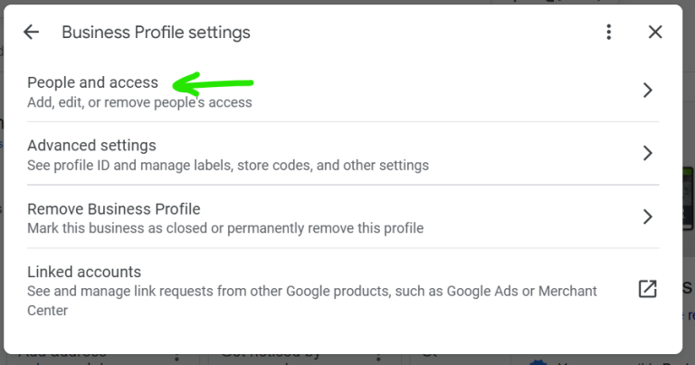 - Click on the three dots and then choose BUSINESS PROFILE SETTINGS from the drop down menu: